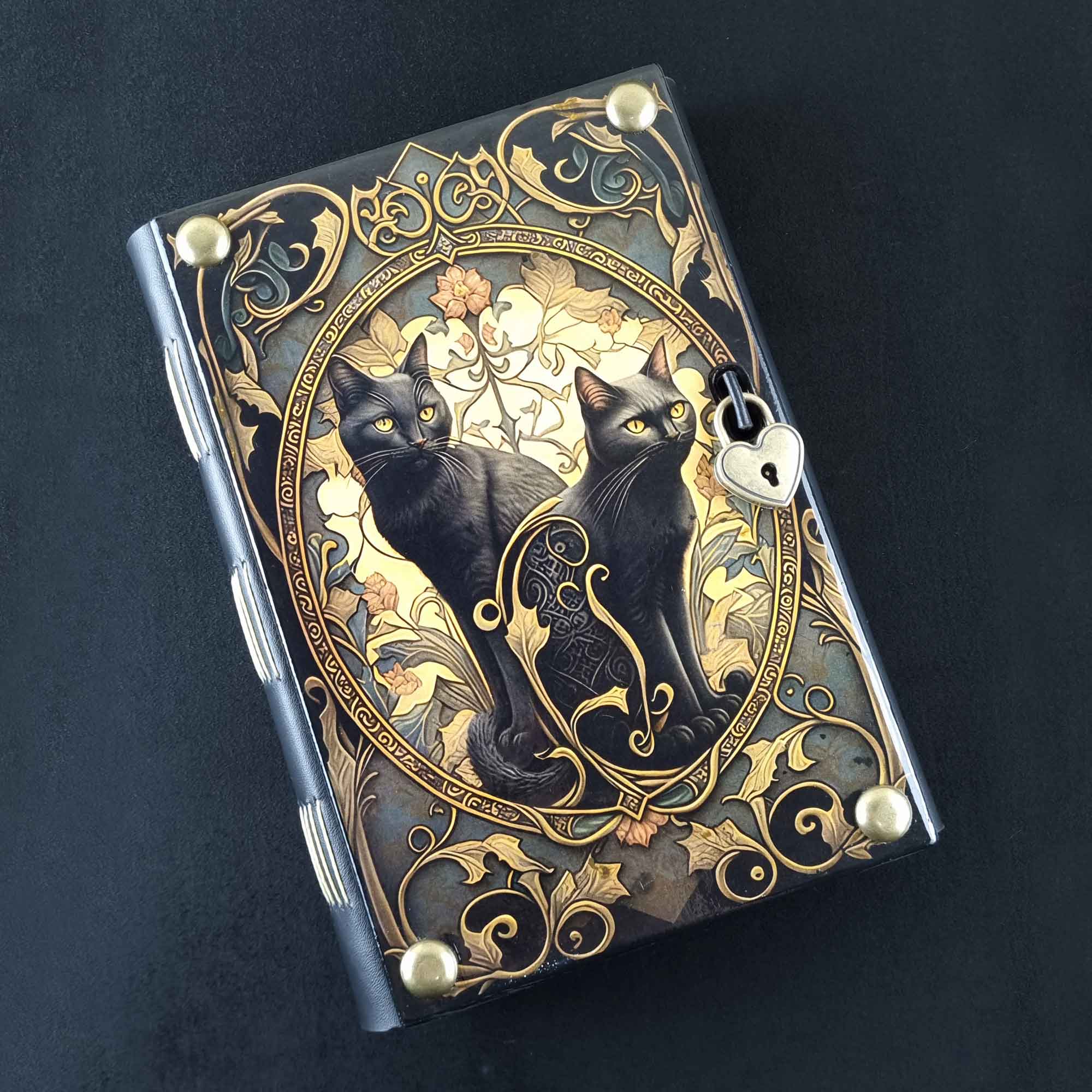 Caderno costurado com capa em madeira Gato 03